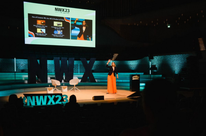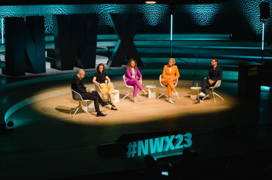 Unter dem Motto WORK FORWARD kamen über 150 namhafte und relevante Stimmen aus Politik, Wirtschaft, Human Resources, Wissenschaft und Kultur zusammen und sorgten für mehr als neun Stunden inspirierendes Bühnenprogramm. Dazu gehörten neben Sascha Lobo und John Bercow (ehem. Sprecher des britischen Unterhauses) auch deutsche Fußball-Prominenz in Person von Steffi Jones, Neven Subotic und Manuel Gräfe. Unter dem Titel „Welcome to New Challenges“ eröffneten Petra von Strombeck, CEO der NEW WORK SE, und Marc-Sven Kopka, Vice President External Affairs NEW WORK SE, die NWX23 und sprachen über Generationenkonflikte, Fachkräftemangel und Künstliche Intelligenz als drei der größten Herausforderungen für den Arbeitsmarkt. „Der Umbruch des Arbeitsmarktes steht auch für einen Aufbruch -und genau hier setzen wir mit der NWX23 an”, erklärt von Strombeck. „Um zukunftsfähig zu bleiben, müssen wir Chancen, die uns die Digitalisierung bietet, nutzen, den Dialog zwischen Generationen fördern und die Bedürfnisse von Fachkräften in den Fokus rücken”.