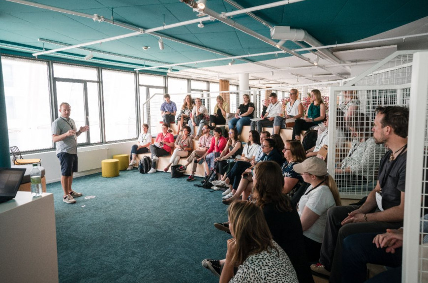 Mit zahlreichen Masterclasses, Panels, Workshops und Keynotes ging das vielfältige Programm den ganzen Tag über weiter. An das Thema altersübergreifende Zusammenarbeit knüpfte auch die Keynote der Generationenforscherin Dr. Eliza Filby an, die erläuterte, wie sich die Perspektivenvielfalt verschiedener Altersgruppen unter einem Dach führen lässt. Ihr Fazit: Es funktioniert, aber man muss daran arbeiten.