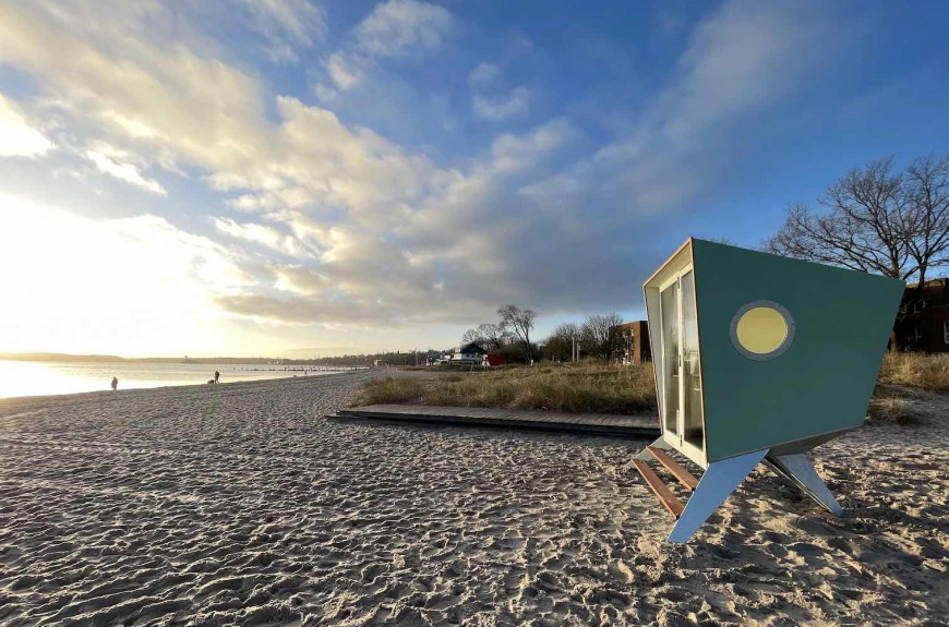Das kleine Ding ist schon eine echte Attraktion: Trotz des in dieser Jahreszeit regional üblichen Schmuddelwetters lockt ein Minihäuschen auf Stelzen derzeit schon viele Besucher an den Strand von Eckernförde an der Ostsee. Und geht es nach dem Wunsch der Erfinder (und der örtlichen Tourismuszentrale) soll man dort schon bald Menschen sehen, die mit schönem Blick aufs Meer an Laptops sitzen und entspannt Arbeiten im futuristischen Beach-Office erledigen.