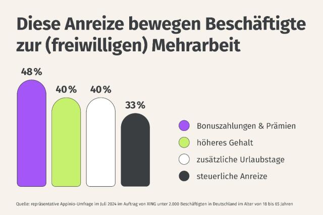 Der Arbeitsmarktreport zeigt, dass die Bereitschaft zu Mehrarbeit unter bestimmten Bedingungen vorhanden ist. Rund 9 Prozent der Beschäftigten würden gerne mehr arbeiten, wobei dieser Anteil unter geringfügig Beschäftigten und Teilzeitkräften auf 15 Prozent steigt. Als wichtigste Anreize für Mehrarbeit nennen die Befragten finanzielle Benefits wie Bonuszahlungen und Prämien (48 %), ein höheres Gehalt im Verhältnis zur Stundenzahl (40 %) oder darüber hinaus (43 %). Auch zusätzliche Urlaubstage (40 %) und steuerliche Anreize (33 %) sind attraktiv.