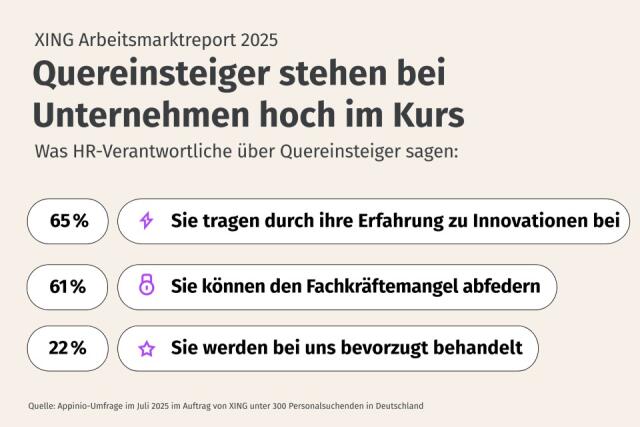 Lange galten sie als Ausnahme, inzwischen werden sie gezielt gesucht: Quereinsteigerinnen und Quereinsteiger rücken immer stärker in den Fokus von Unternehmen. Laut dem neuen XING Arbeitsmarktreport 2025 setzen viele Personalverantwortliche inzwischen bewusst auf Talente mit untypischem Berufsweg. Nicht nur, um dem Fachkräftemangel zu begegnen, sondern auch, um frische Perspektiven ins Team zu bringen.