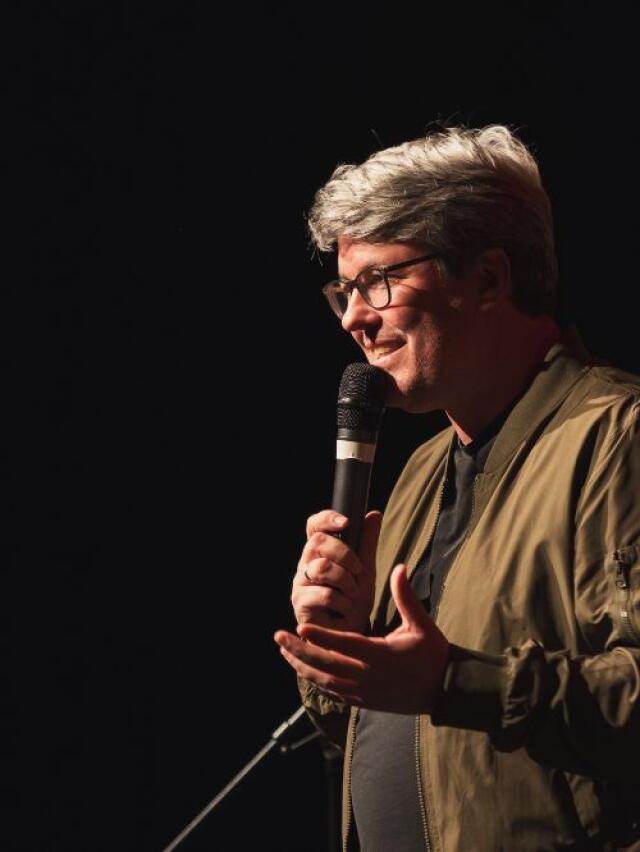 André macht Stand-up Comedy, das bedeutet: Ein Mann, ein Mikrofon. Einen Künstlernamen oder eine Bühnenpersönlichkeit hat er nicht. Privat und auf der Bühne ist er einfach nur André. Im Alltagsoutfit - Jeans und T-Shirt, Brille, Seitenscheitel - steht er allein vor dem Publikum und philosophiert über die Rätsel des Alltags: Warum können Ehefrauen, die Spülmaschine nicht richtig einräumen? Warum benutzen Teenager ihr Telefon nur für WhatsApp-Sprachnachrichten? Warum bleiben Väter bis ins hohe Alter unverbesserlich? Wenn die Lacher ausbleiben, fühlen sich wenige Minuten endlos an. Keine Chance, sich zu verstecken, niemand, der einen aus der peinlichen Lage rettet. Warum tut sich ein erfolgsverwöhnter Ex-Manager so etwas an?