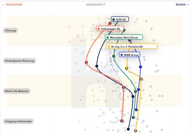 Diese unterschiedlichen Beurteilungen fallen in eine Phase tiefgreifender Umbrüche der Konzerne: Elektromobilität, Digitalisierung und neue Mobilitätskonzepte verändern Geschäftsmodelle, Strukturen und Rollenbilder. Wo strategische Leitplanken klar kommuniziert und kulturell verankert sind, scheinen Mitarbeitende mehr Orientierung zu finden – ein Faktor, der auch in Sachen Fachkräfte-Bindung an Bedeutung gewinnt.