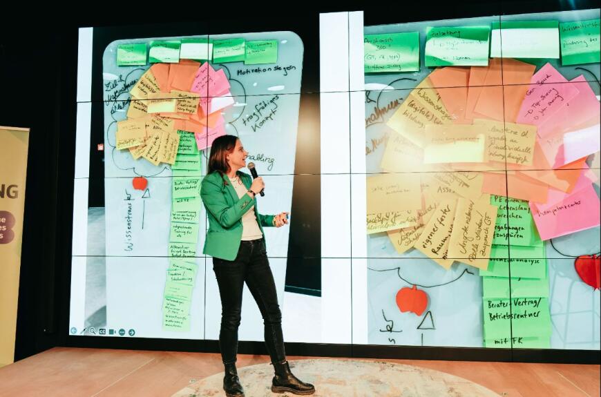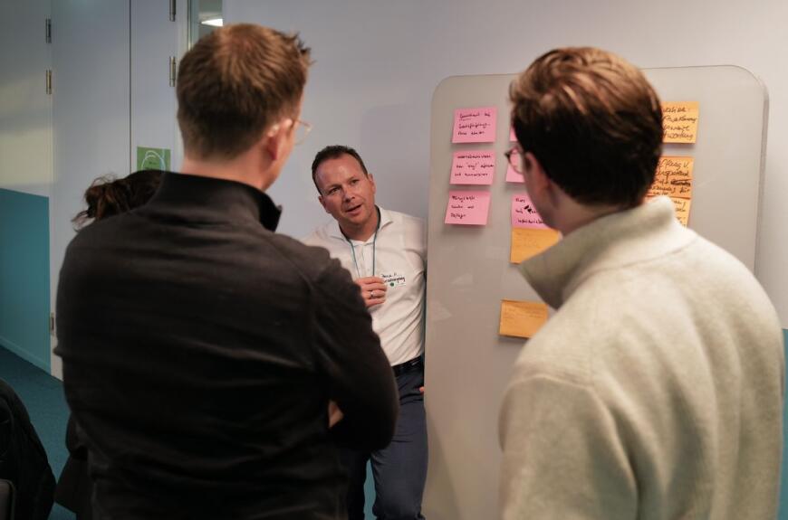 Am Nachmittag entwickelten die Teams ihre Ansätze dann weiter, brachten sie mit Flipcharts, Post-its, selbstgebastelten Collagen und mitunter sogar Pfeifenreiniger-Männchen visuell auf den Punkt und diskutierten über die Praxistauglichkeit. Die so erarbeiteten Lösungen - von neuen Benefit-Angeboten bis zu Strategien für die KI-Integration in die Personalarbeit - wurden schließlich vor allen Teilnehmern vorgestellt. Ein wichtiger Punkt dabei: Jedes Team leitete aus seinem Entwicklungsprozess einen "machbaren 15-Prozent-Schritt" ab, mit dem das im NWX Circle entstandene Projekt schon ab dem nächsten Arbeitstag konkret vorangetrieben werden sollte. Damit es nicht nur bei schönen Ideen bleibt.